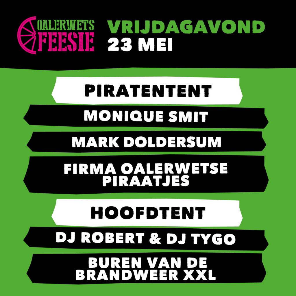 Tickets kopen Vrijdag Monique Smit Buren van de Brandweer XXL Zaterdag Jeffrey Parmentier Oxygen coverband DJ Vivaro Zondag Tiktok Tammo Danny Panadero